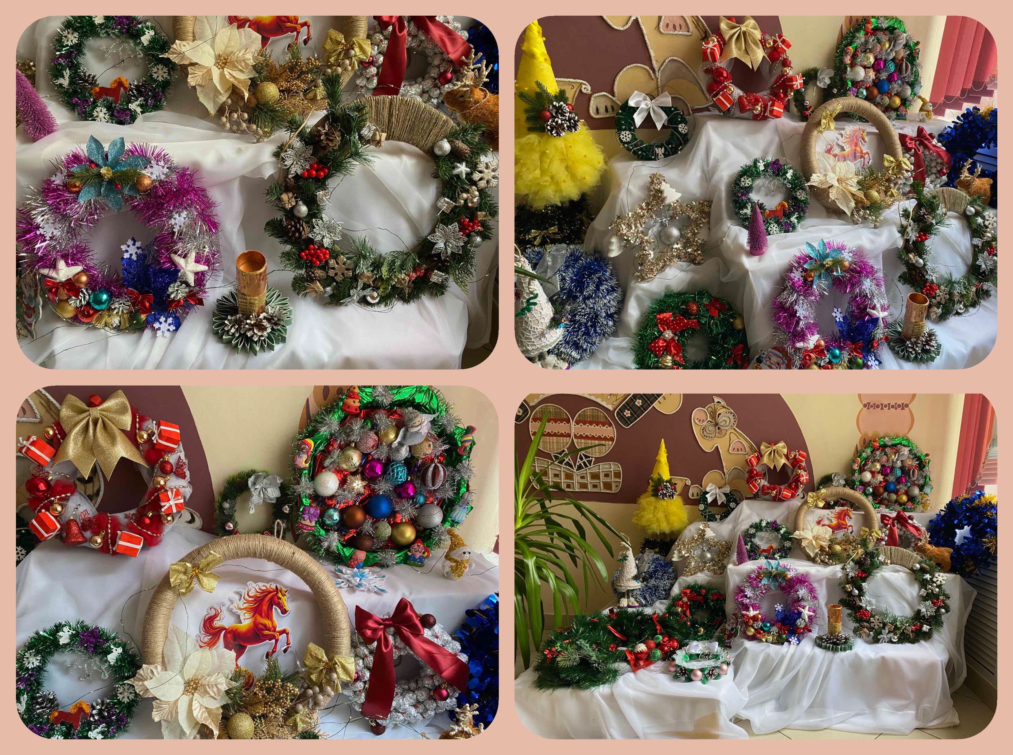 В преддверии Рождественских и  Новогодних праздников наш детский сад превратился в маленькую  творческую мастерскую по изготовлению  праздничных веночков.  И главными мастерами стали  наши родители и воспитанники.   Выставка " Рождественский веночек" создала в детском саду тёплую и радостную атмосферу.