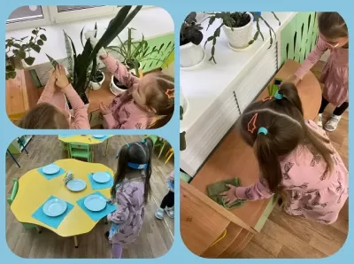 В учреждении образования уделяется особое внимание трудовому воспитанию. Так, в средней группе организована трудовая деятельность детей. Девочки-труженицы протирали пыль в уголке природы, ухаживали за комнатными растениями, выполняли обязанности дежурного по столовой.