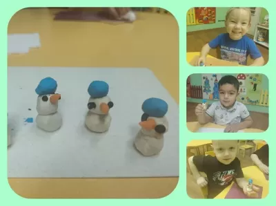 С целью развития воображения и творческих способностей, сегодня воспитанники разновозрастной группы лепили снеговика. Деятельность заинтересовала детей, они проявили максимальную активность и с удовольствием выполнили задание.