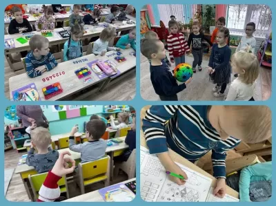 С помощью занимательных упражнений закрепляли порядковый и количественный счёт, представления о ромбе. В игре "Я начну, ты продолжай" воспитанники закрепили дни недели.