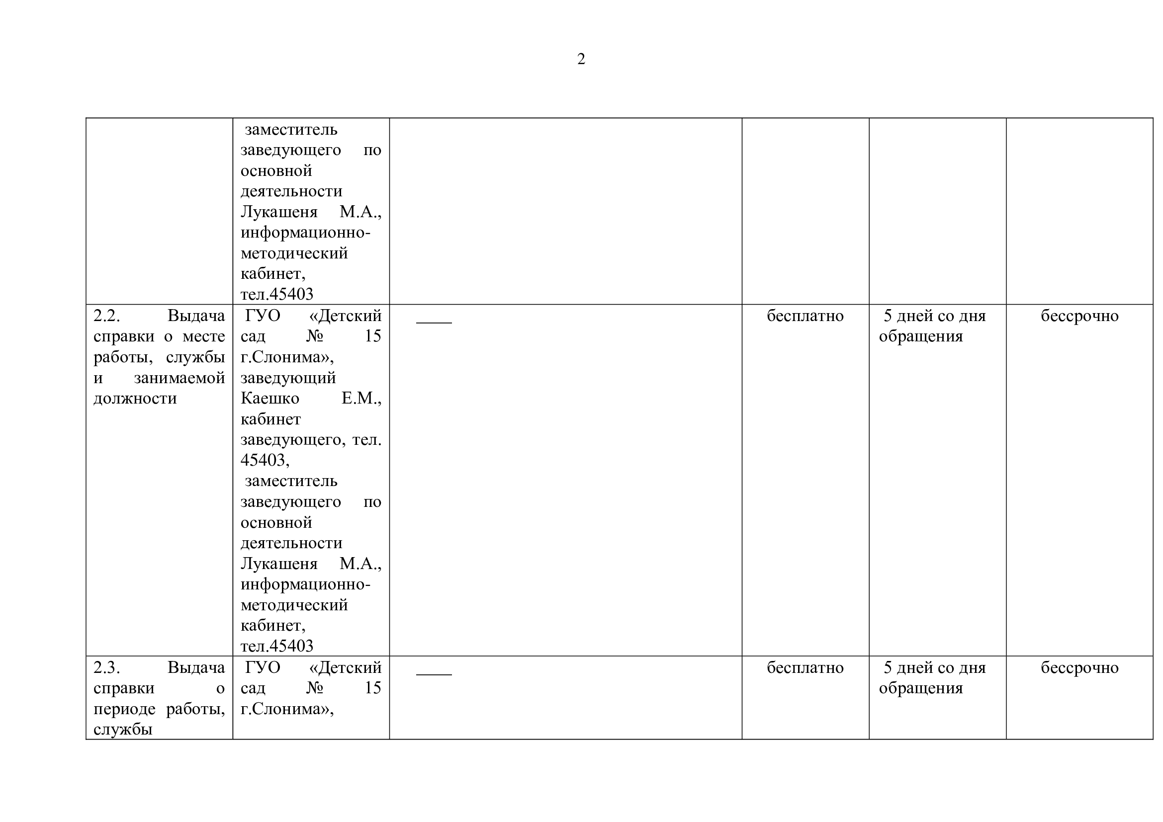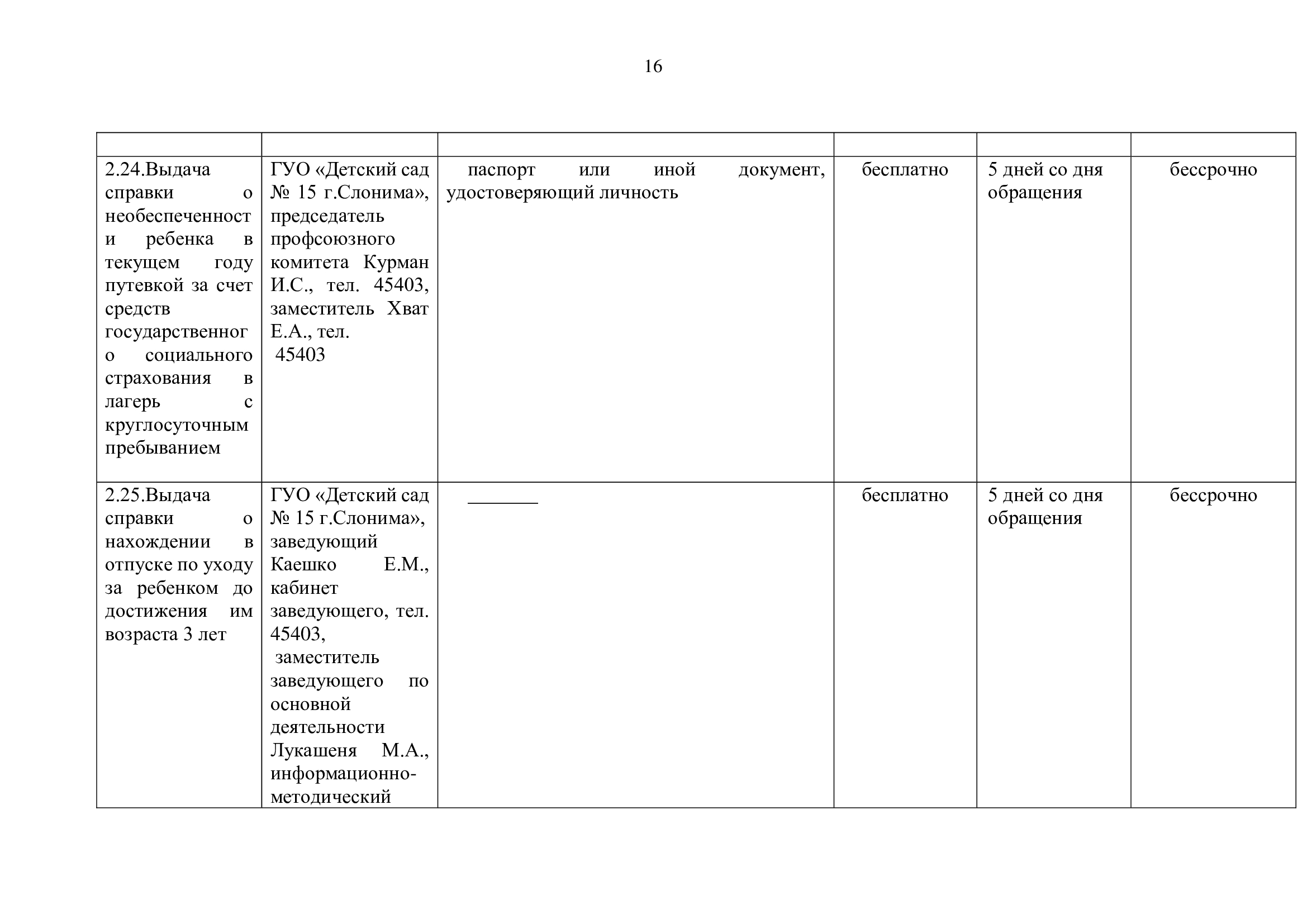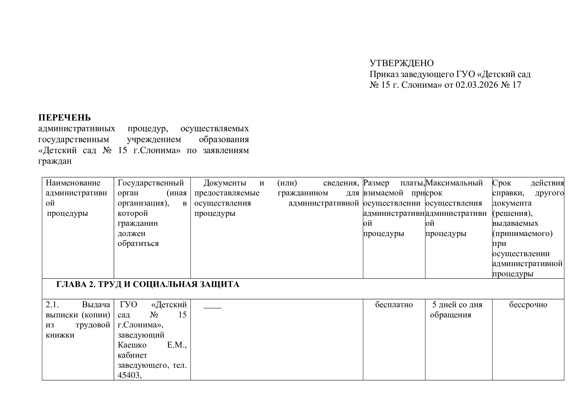 Перечень административных процедур, осуществляемых ГУО "Детский сад № 15 г. Слонима"