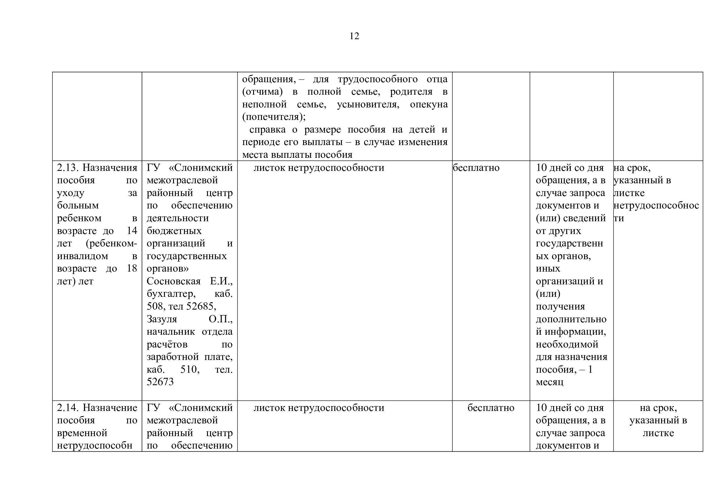Прием граждан с заявлениями  о выдаче выписки (копии) из трудовой книжки,  справки о месте работы, службы и занимаемой должности,  справки о периоде работы, службы,  о выходе в отпуск по уходу за ребенком до достижений в возрасте 3 лет,   о том, что гражданин является воспитанником учреждения образования о необеспеченности ребенка в текущем году путевкой за счет средств государственного социального страхования в лагерь с круглосуточным пребыванием, о невыделении путевки на детей на санаторно-курортное лечение и оздоровление в текущем году осуществляется